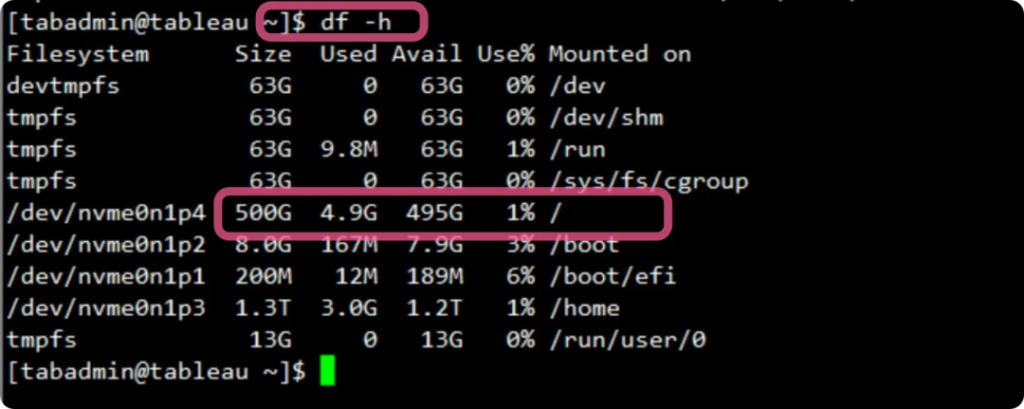 Tableau 程序默认安装在/opt 路径,文件目录在/var/opt 路径,请确保磁盘空间: