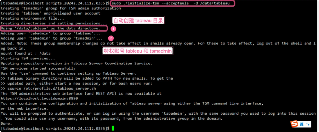 [admin@tabserver ~]$ tsm initialize --start-server --request-timeout 1800