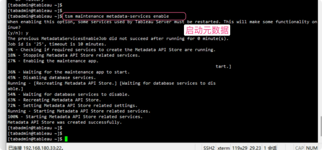 运行命令:tsm maintenance metadata-services enable, 如下所示:
