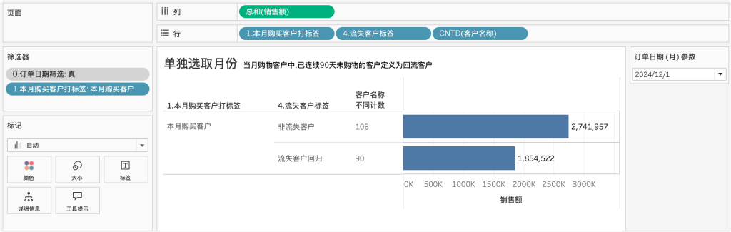 核心逻辑就两个:“曾经流失”+“当月复购”。作用如下: