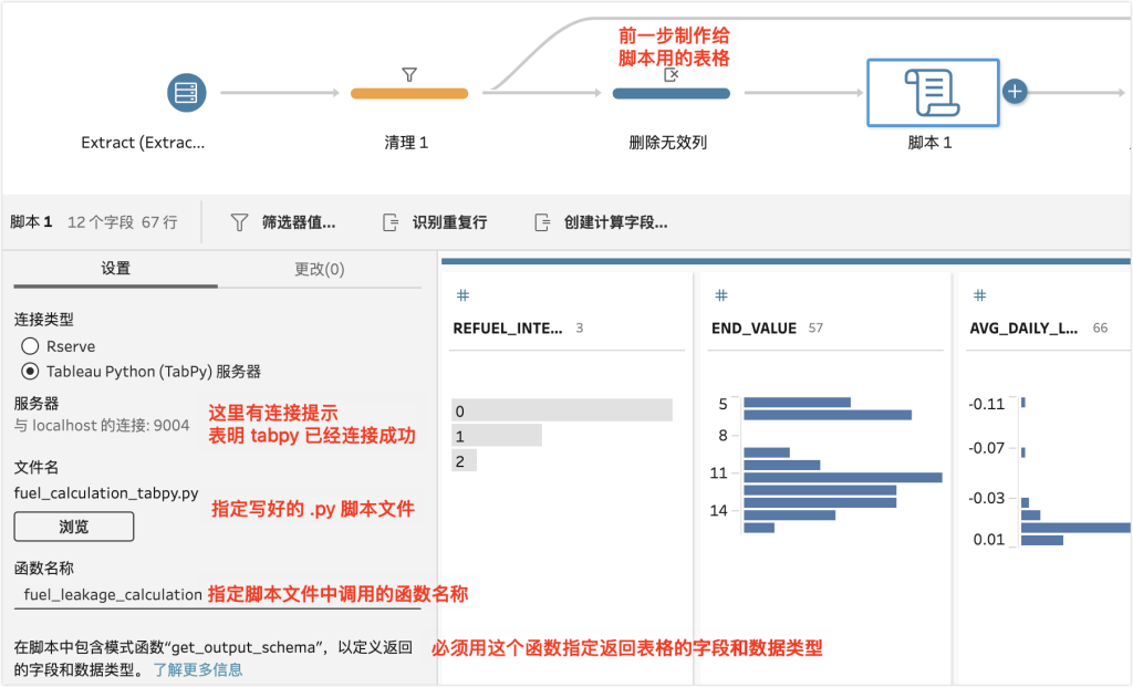 配置完成后,服务器端 Tableau Prep 的脚本节点使用逻辑与桌面端一致: